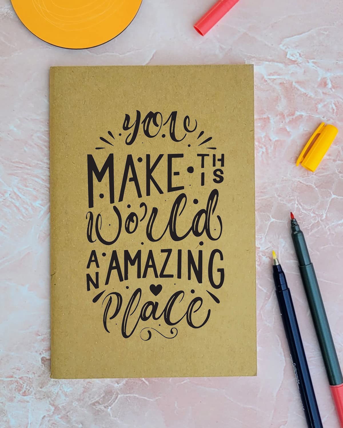 Amazing World - Brown A5 Doodle Notebook - Kraft Cover Notebook - A5 - 300 GSM Kraft Cover - Handmade - Unruled - 80 Pages - Natural Shade Pages 120 GSM - Funny Quotes & Quirky, Funky designs