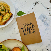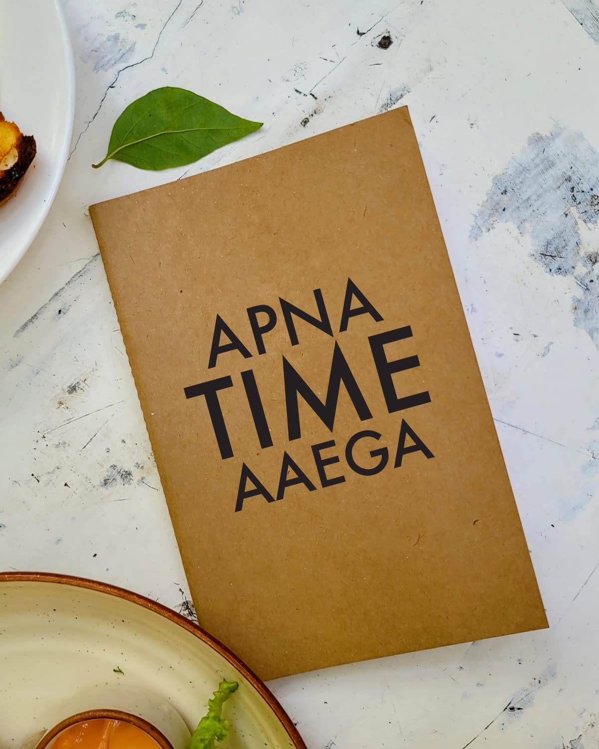 Apna Time Aaega - Brown A5 Doodle Notebook - Kraft Cover Notebook - A5 - 300 GSM Kraft Cover - Handmade - Unruled - 80 Pages - Natural Shade Pages 120 GSM - Funny Quotes & Quirky, Funky designs