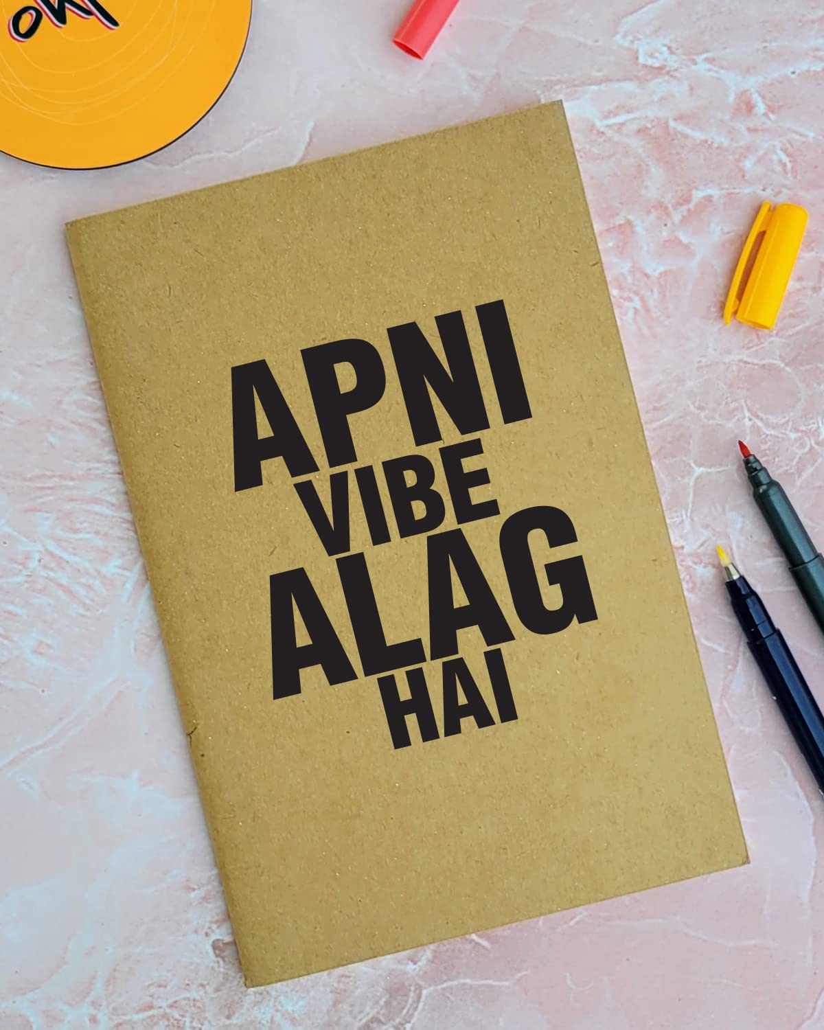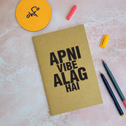 Apni Vibe Alag Hai - Brown A5 Doodle Notebook - Kraft Cover Notebook - A5 - 300 GSM Kraft Cover - Handmade - Unruled - 80 Pages - Natural Shade Pages 120 GSM - Funny Quotes & Quirky, Funky designs