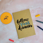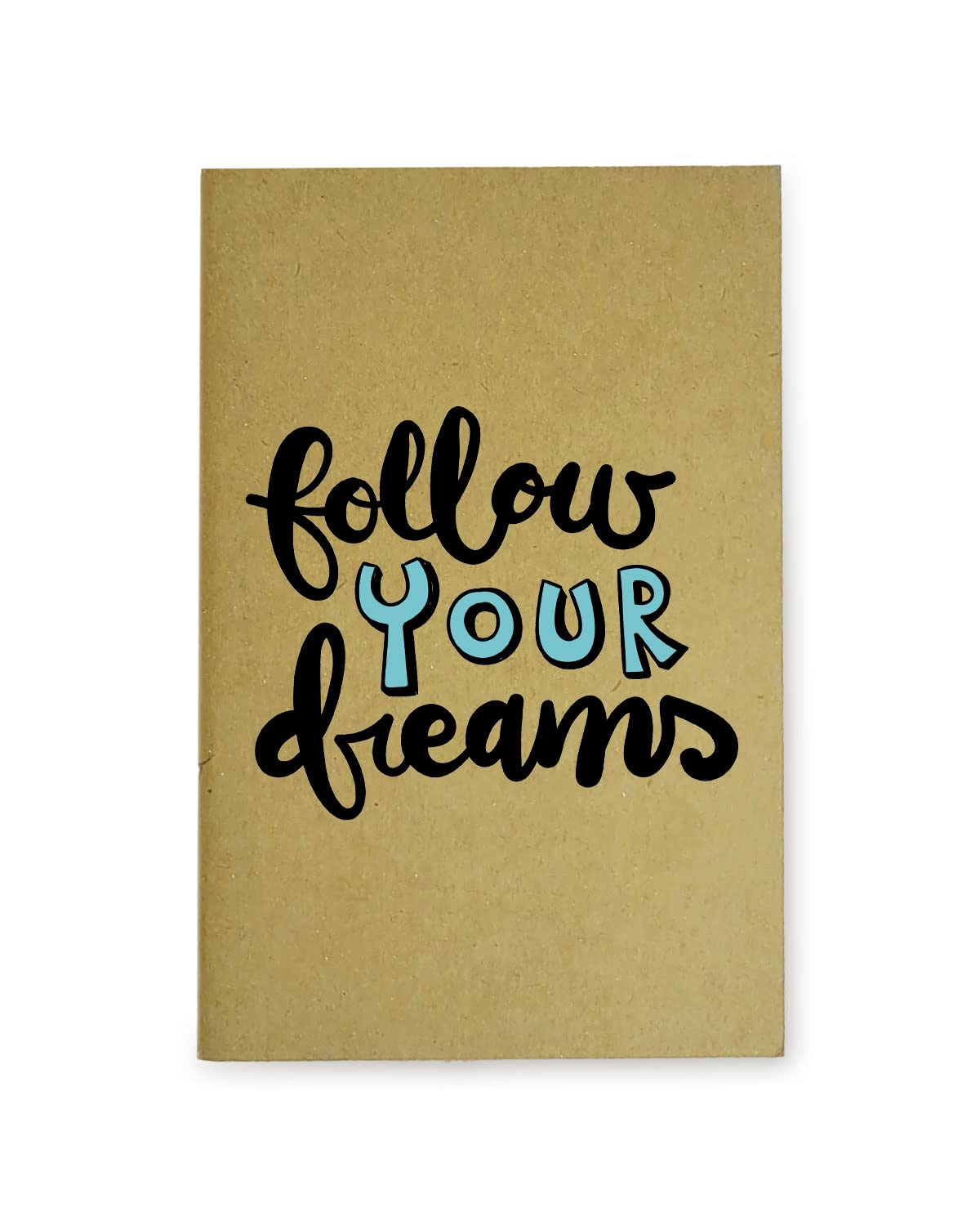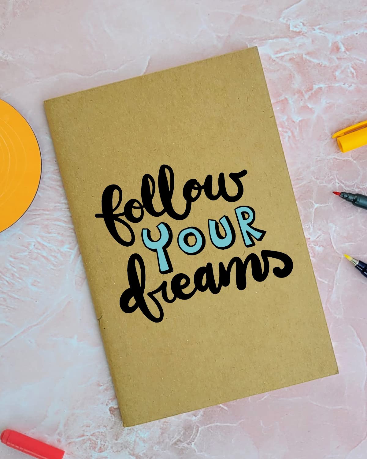 Follow Your Dreams - Brown A5 Doodle Notebook - Kraft Cover Notebook - A5 - 300 GSM Kraft Cover - Handmade - Unruled - 80 Pages - Natural Shade Pages 120 GSM- Funny Quotes & Quirky, Funky designs