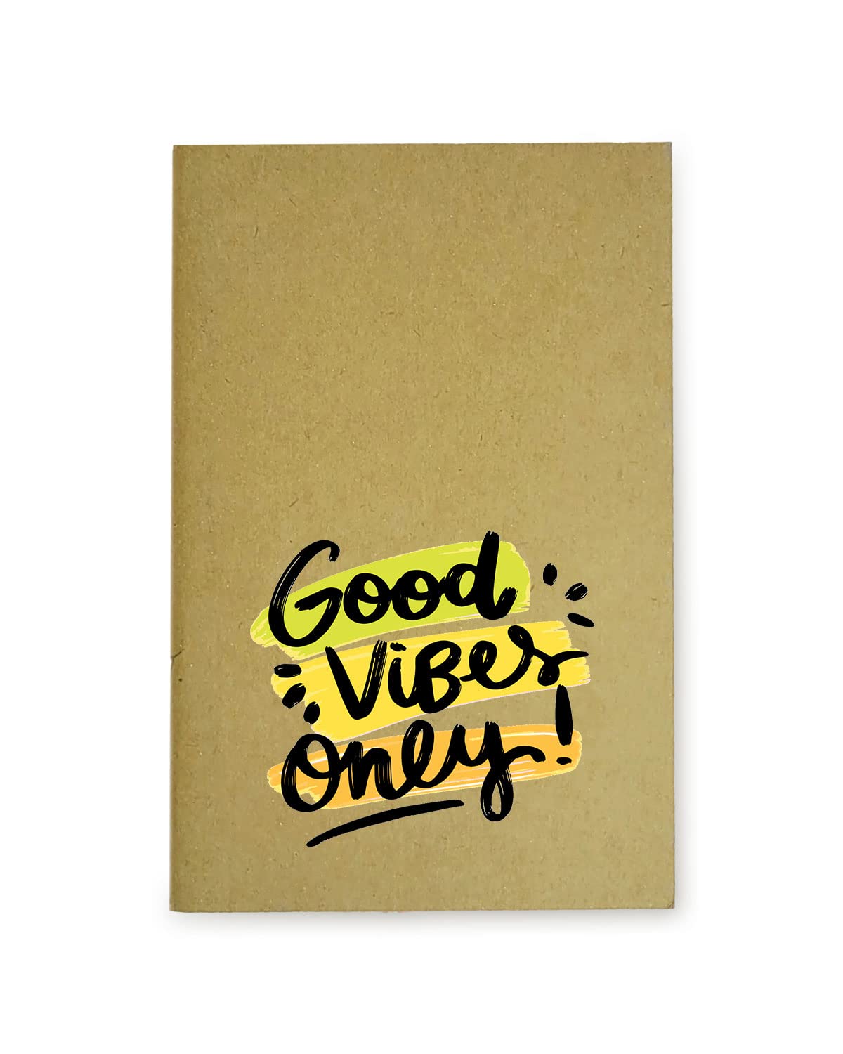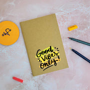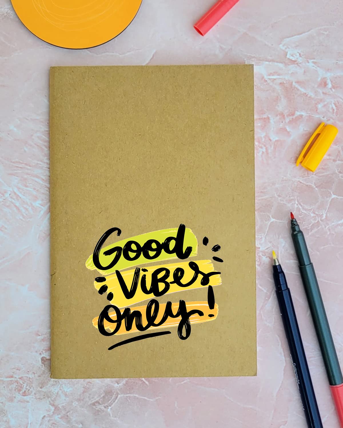 Good Vibes Only - Brown A5 Doodle Notebook - Kraft Cover Notebook - A5 - 300 GSM Kraft Cover - Handmade - Unruled - 80 Pages - Natural Shade Pages 120 GSM - Funny Quotes & Quirky, Funky designs
