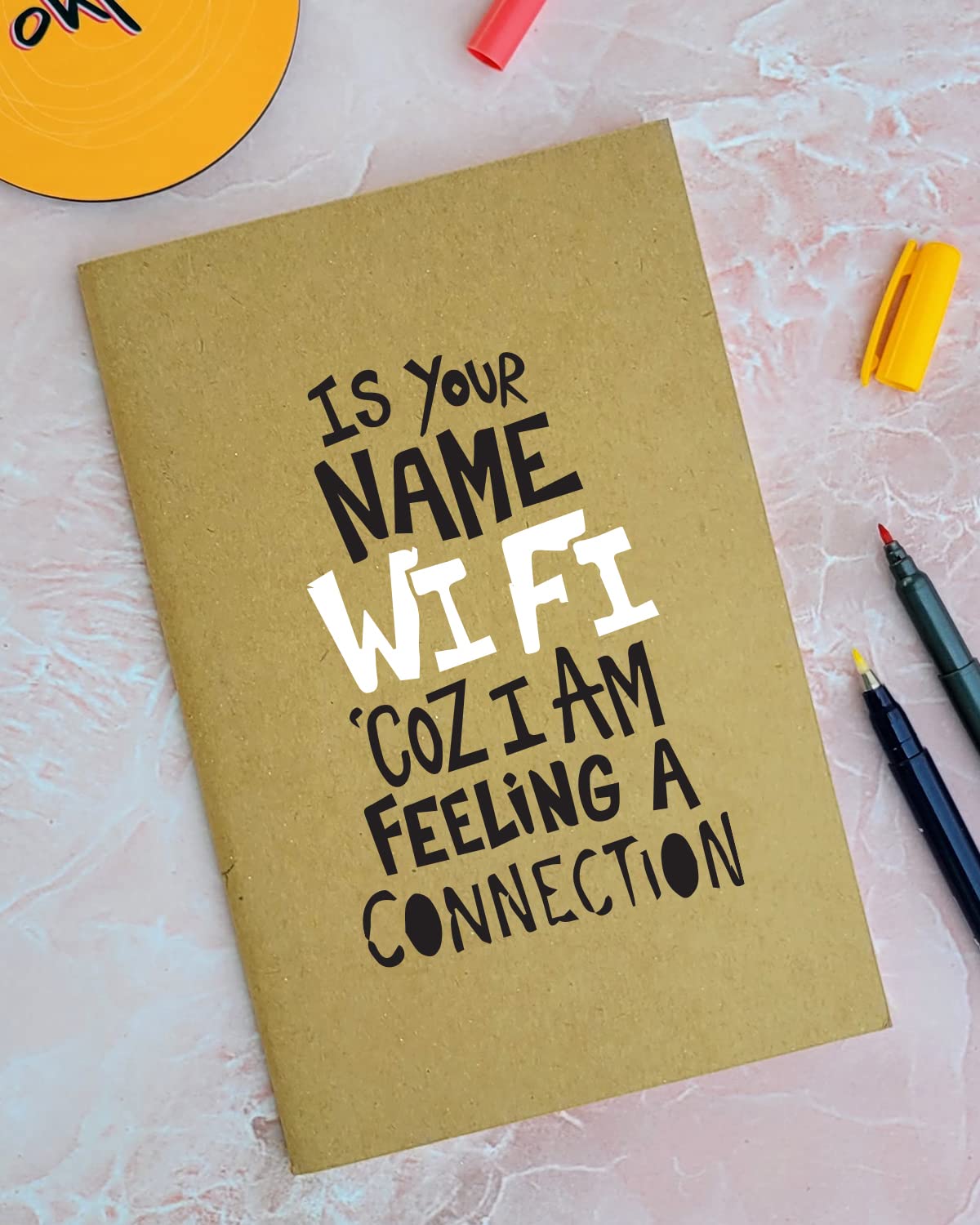 Is Your Name WiFi - Brown A5 Doodle Notebook - Kraft Cover Notebook - A5 - 300 GSM Kraft Cover - Handmade - Unruled - 80 Pages - Natural Shade Pages 120 GSM - Funny Quotes & Quirky, Funky designs