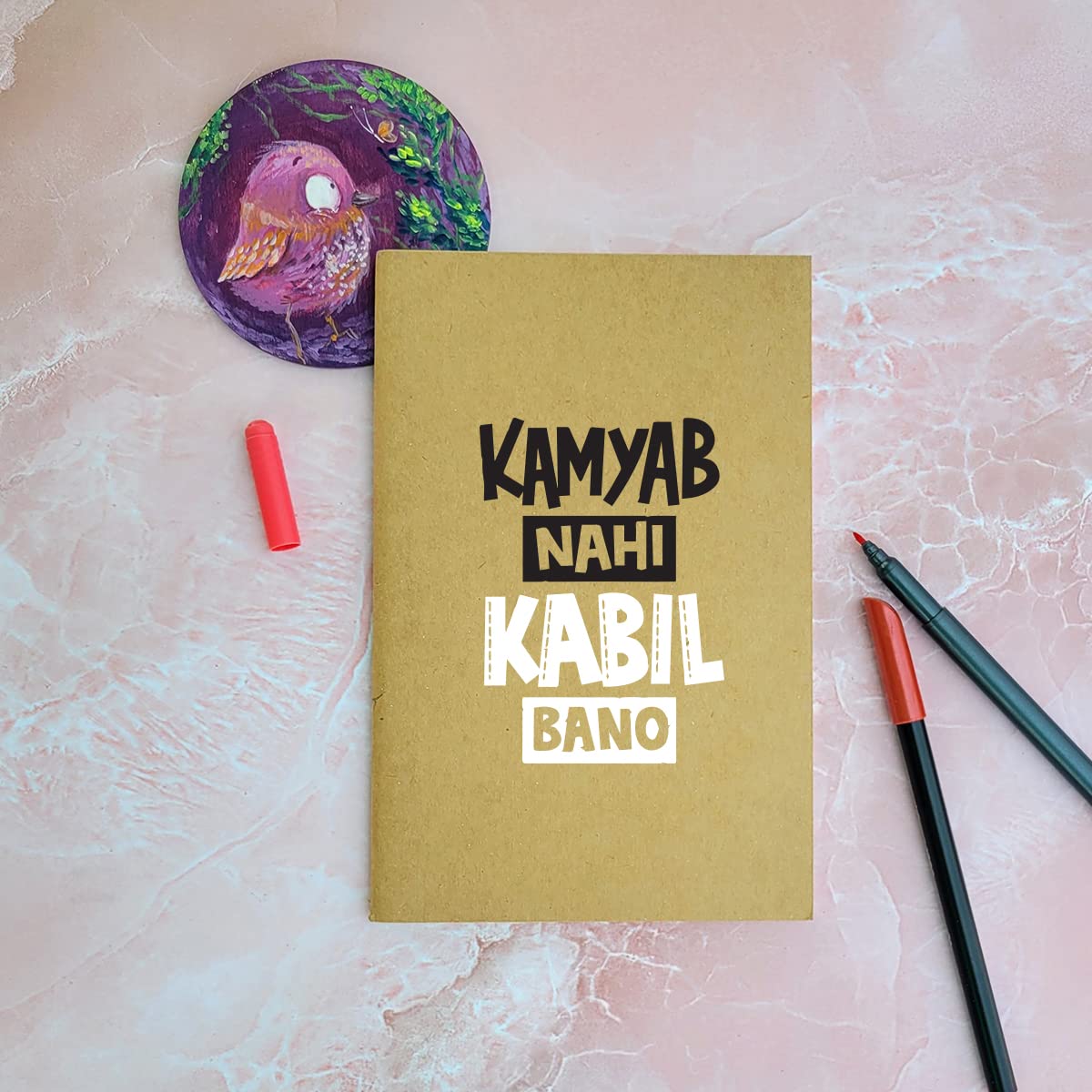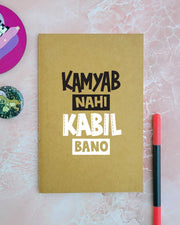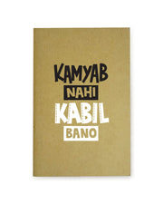 Kamyab Nahi Kabil bano - Brown A5 Doodle Notebook - Kraft Cover Notebook - A5 - 300 GSM Kraft Cover - Handmade - Unruled - 80 Pages - Natural Shade Pages 120 GSM- Funny Quotes & Quirky, Funky designs