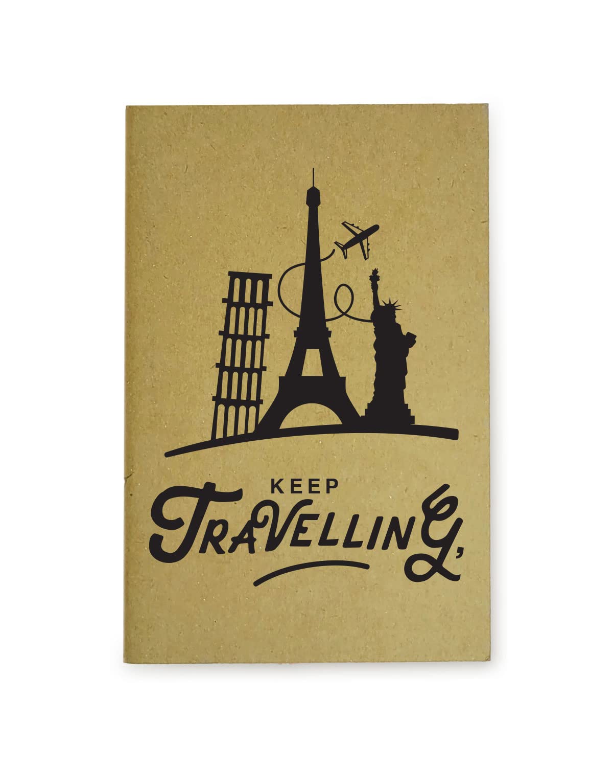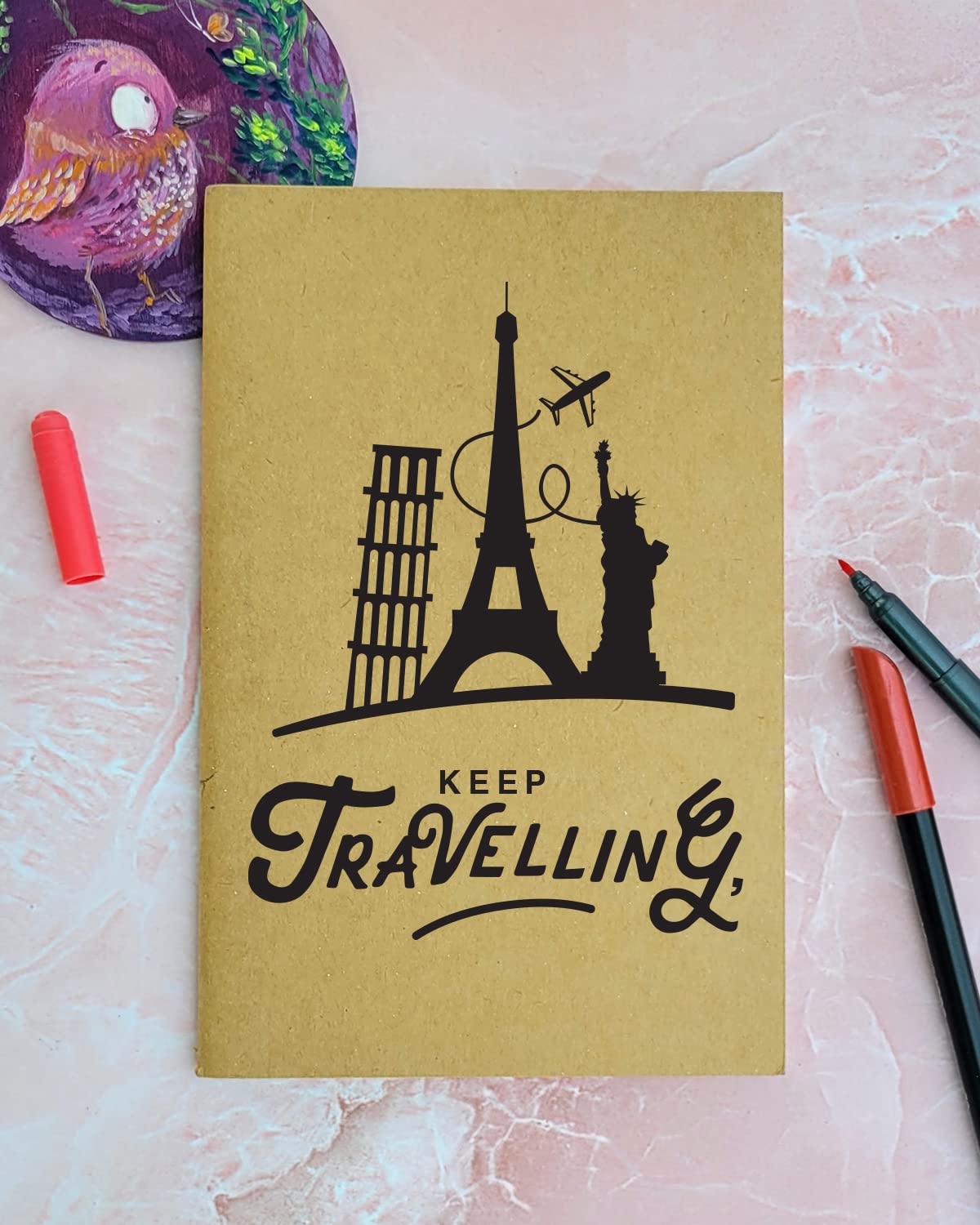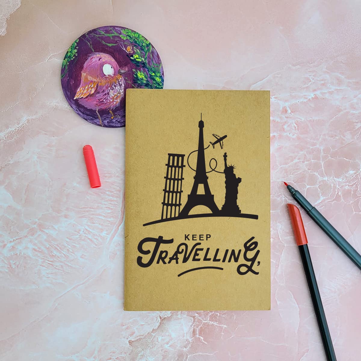 Keep Travelling - Brown A5 Doodle Notebook - Kraft Cover Notebook - A5 - 300 GSM Kraft Cover - Handmade - Unruled - 80 Pages - Natural Shade Pages 120 GSM - Funny Quotes & Quirky, Funky designs