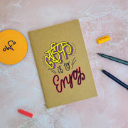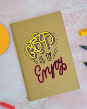 Life Is To Enjoy - Brown A5 Doodle Notebook - Kraft Cover Notebook - A5 - 300 GSM Kraft Cover - Handmade - Unruled - 80 Pages - Natural Shade Pages 120 GSM - Funny Quotes & Quirky, Funky designs