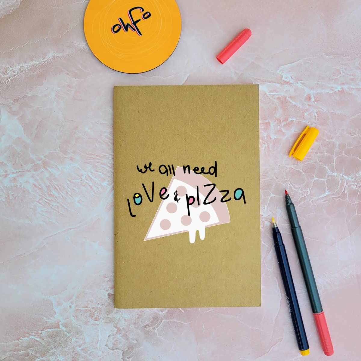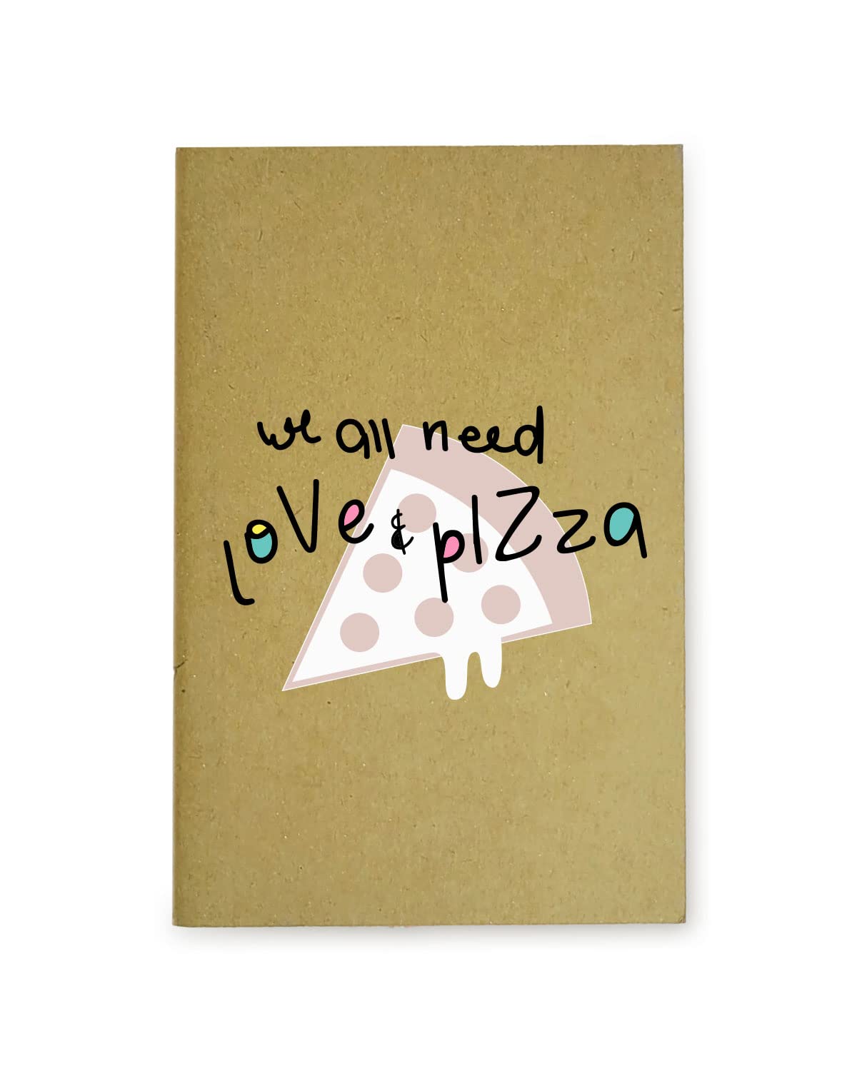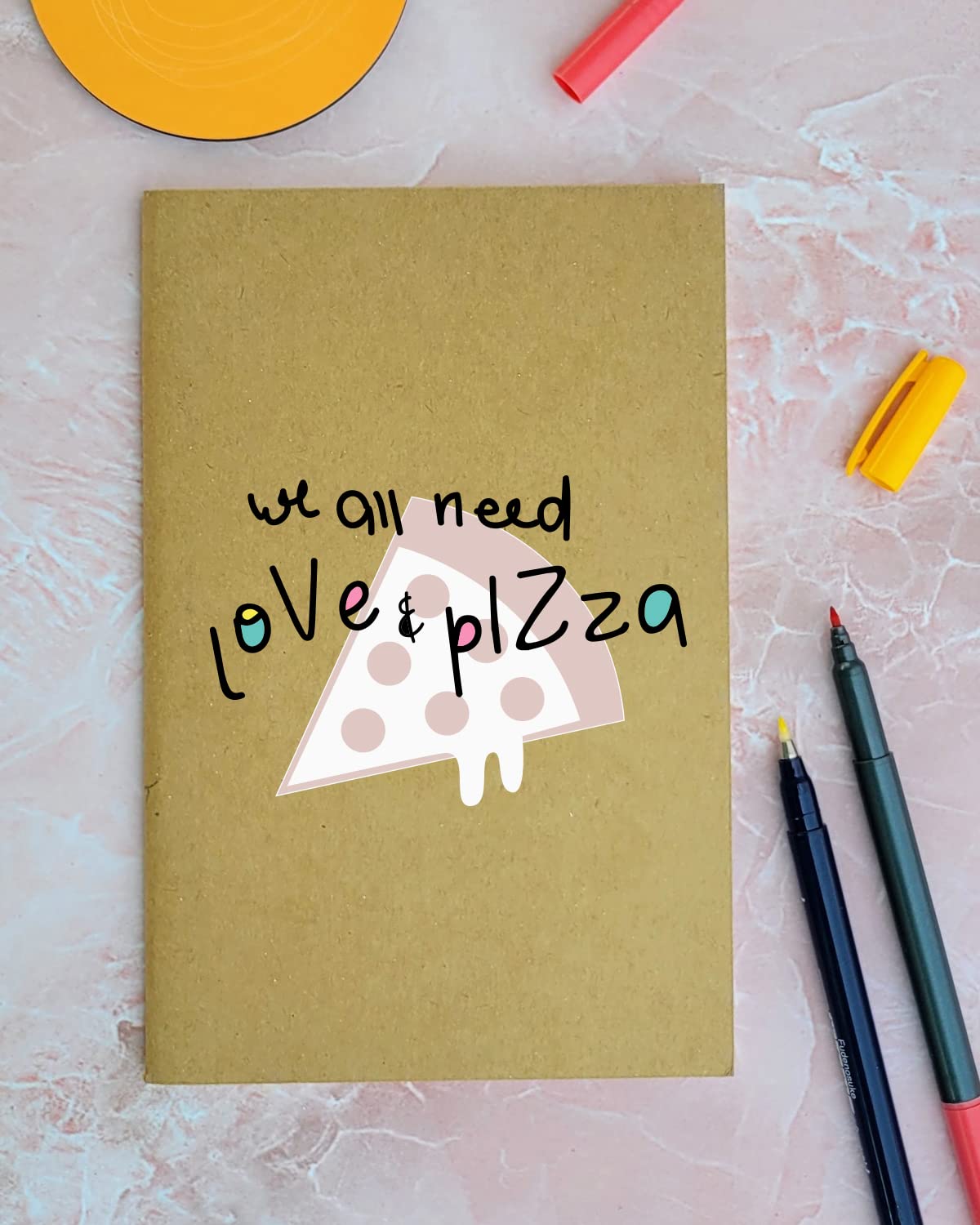 Love & Pizza - Brown A5 Doodle Notebook - Kraft Cover Notebook - A5 - 300 GSM Kraft Cover - Handmade - Unruled - 80 Pages - Natural Shade Pages 120 GSM- Funny Quotes & Quirky, Funky designs