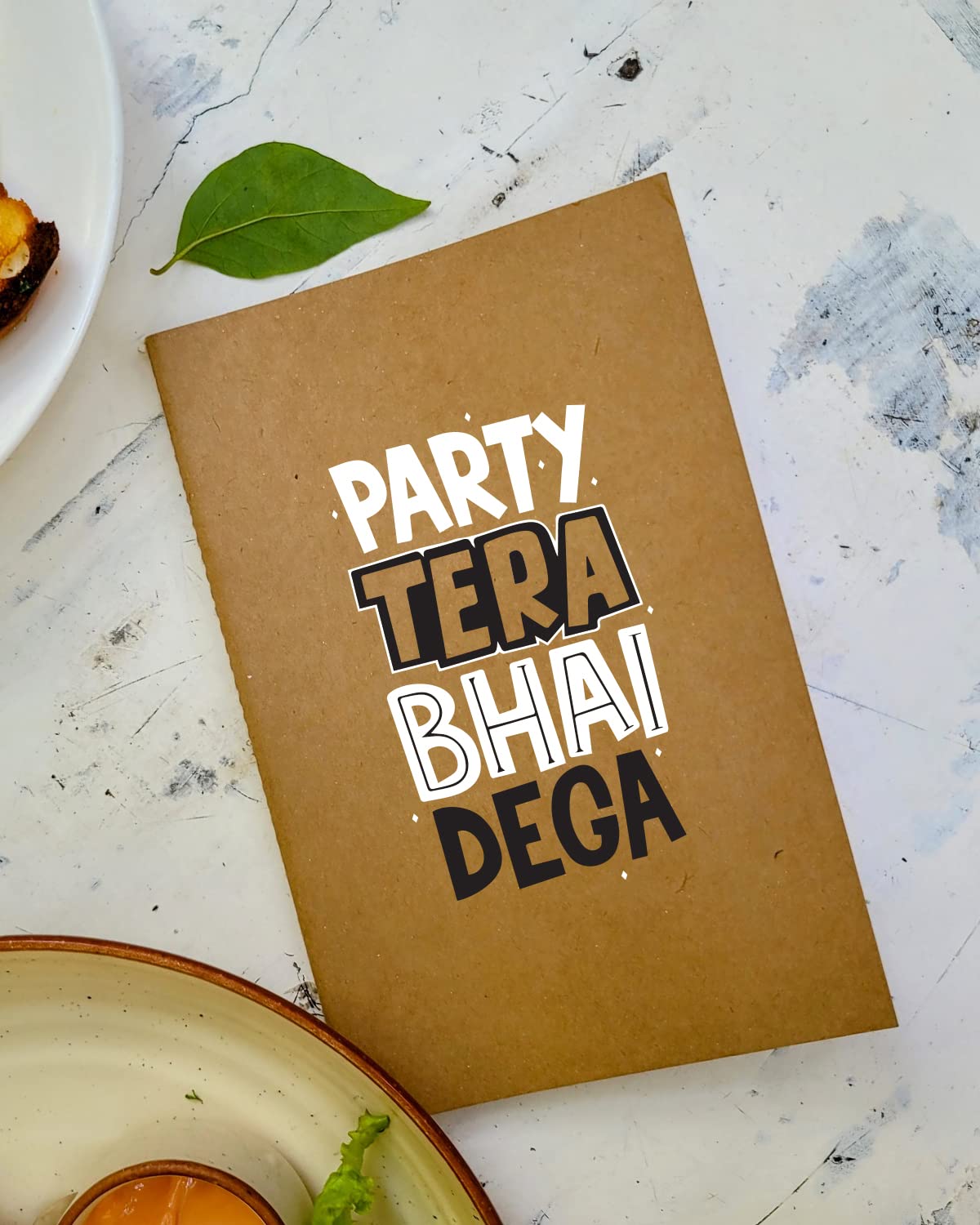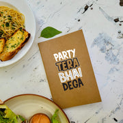 Party Tera Bhai Dega - Brown A5 Doodle Notebook - Kraft Cover Notebook - A5 - 300 GSM Kraft Cover - Handmade - Unruled - 80 Pages - Natural Shade Pages 120 GSM - Funny Quotes & Quirky, Funky designs