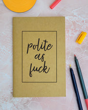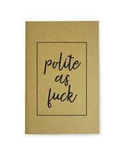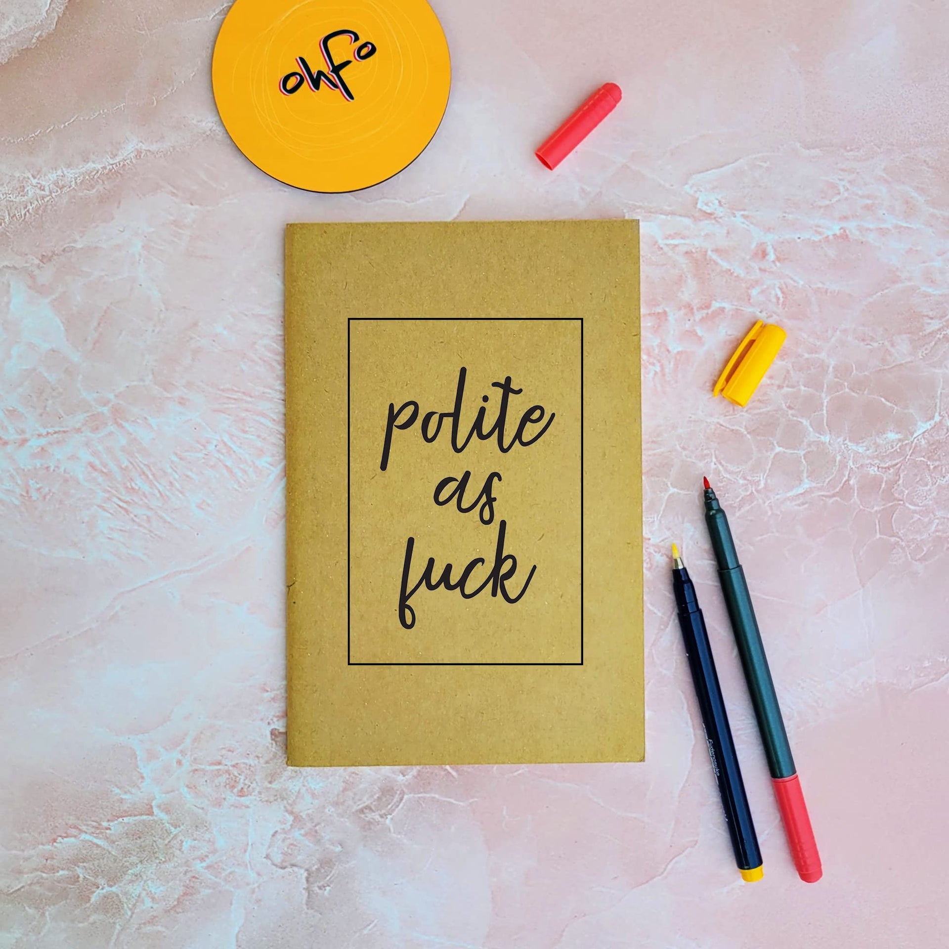 Polite As F**k - Brown A5 Doodle Notebook - Kraft Cover Notebook - A5 - 300 GSM Kraft Cover - Handmade - Unruled - 80 Pages - Natural Shade Pages 120 GSM - Funny Quotes & Quirky, Funky designs