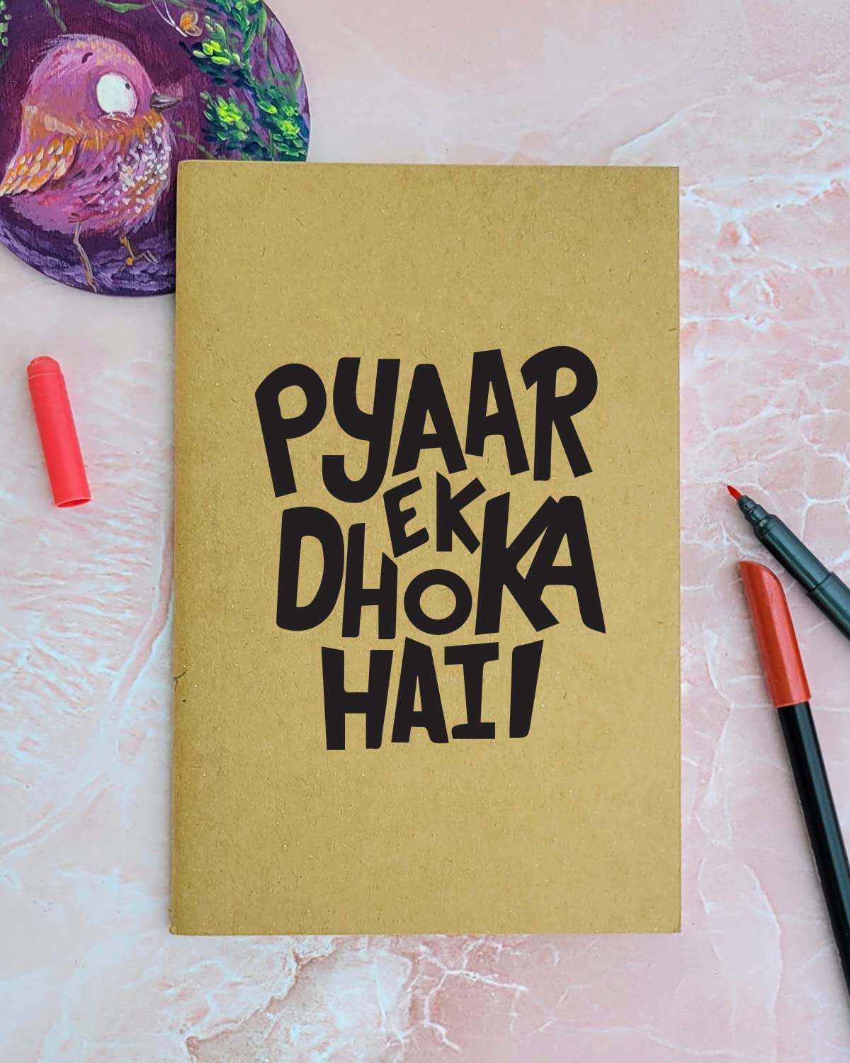 Pyar Ek Dhokha Hai - Brown A5 Doodle Notebook - Kraft Cover Notebook - A5 - 300 GSM Kraft Cover - Handmade - Unruled - 80 Pages - Natural Shade Pages 120 GSM - Funny Quotes & Quirky, Funky designs