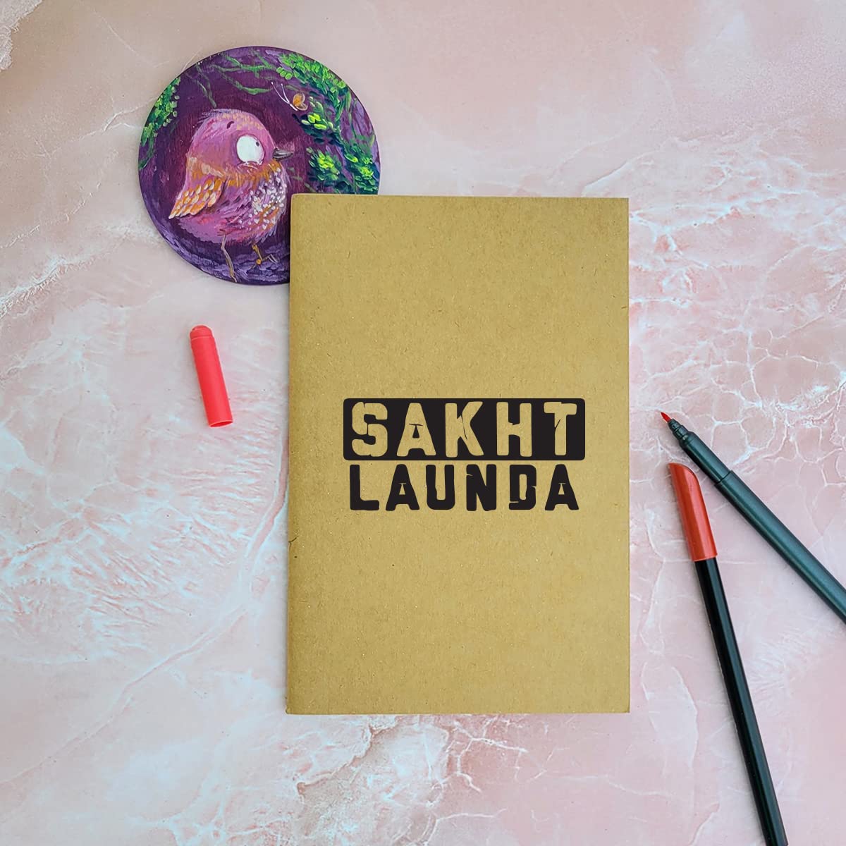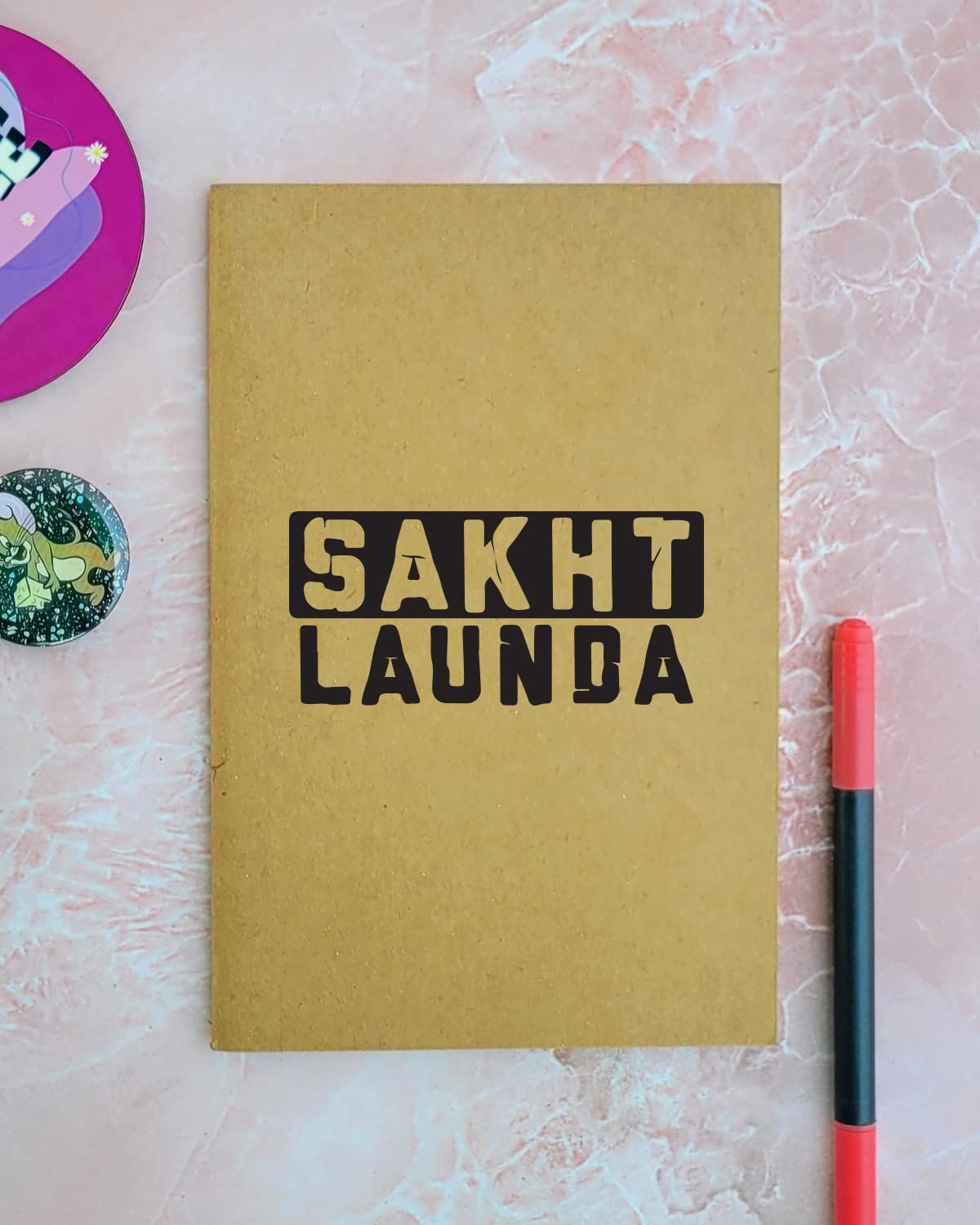 Sakht Launda - Brown A5 Doodle Notebook - Kraft Cover Notebook - A5 - 300 GSM Kraft Cover - Handmade - Unruled - 80 Pages - Natural Shade Pages 120 GSM - Funny Quotes & Quirky, Funky designs