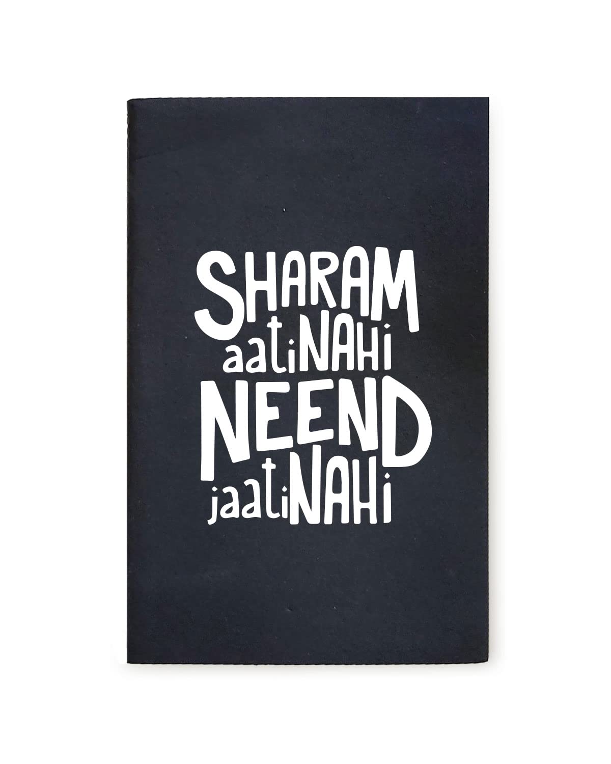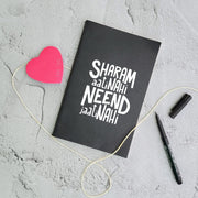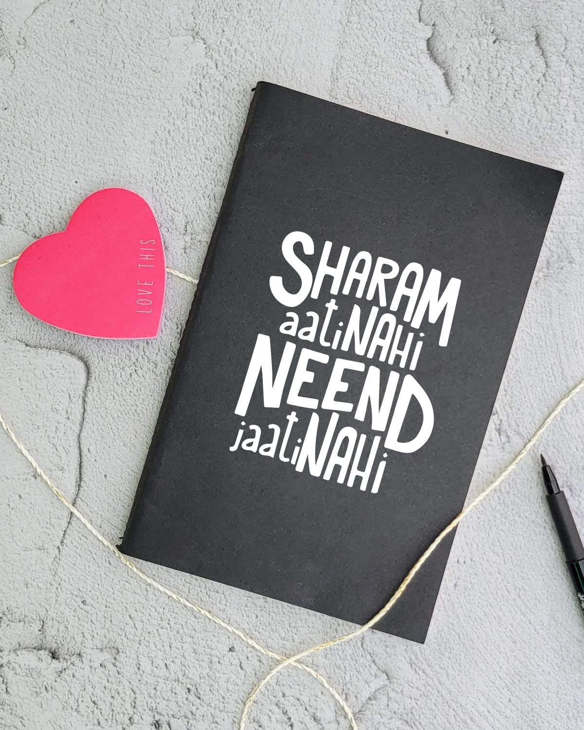 Sharam Aati Nahi - Black A5 Doodle Notebook - Kraft Cover Notebook - A5 - 300 GSM Kraft Cover - Handmade - Unruled - 80 Pages - Natural Shade Pages 120 GSM - Funny Quotes & Quirky, Funky designs