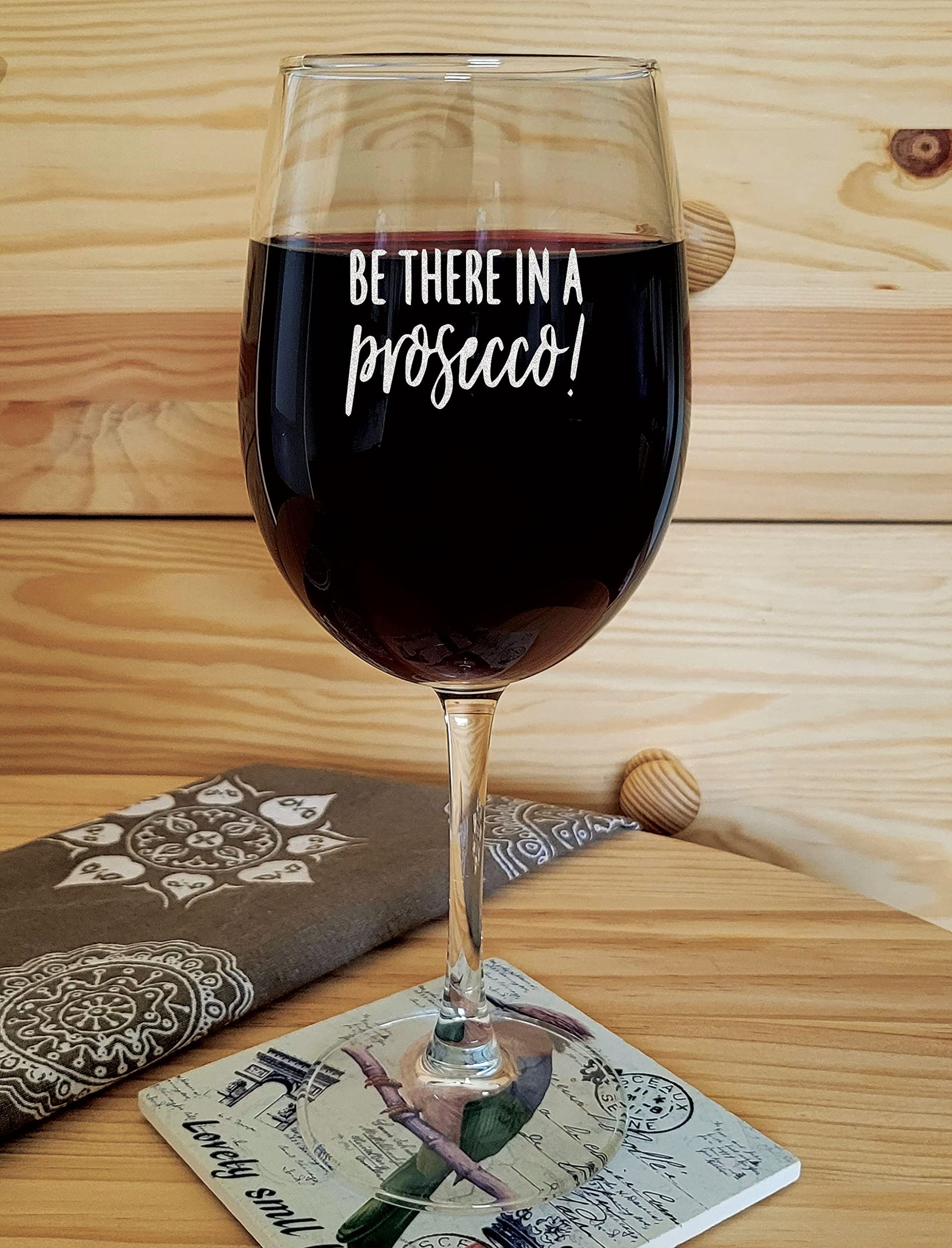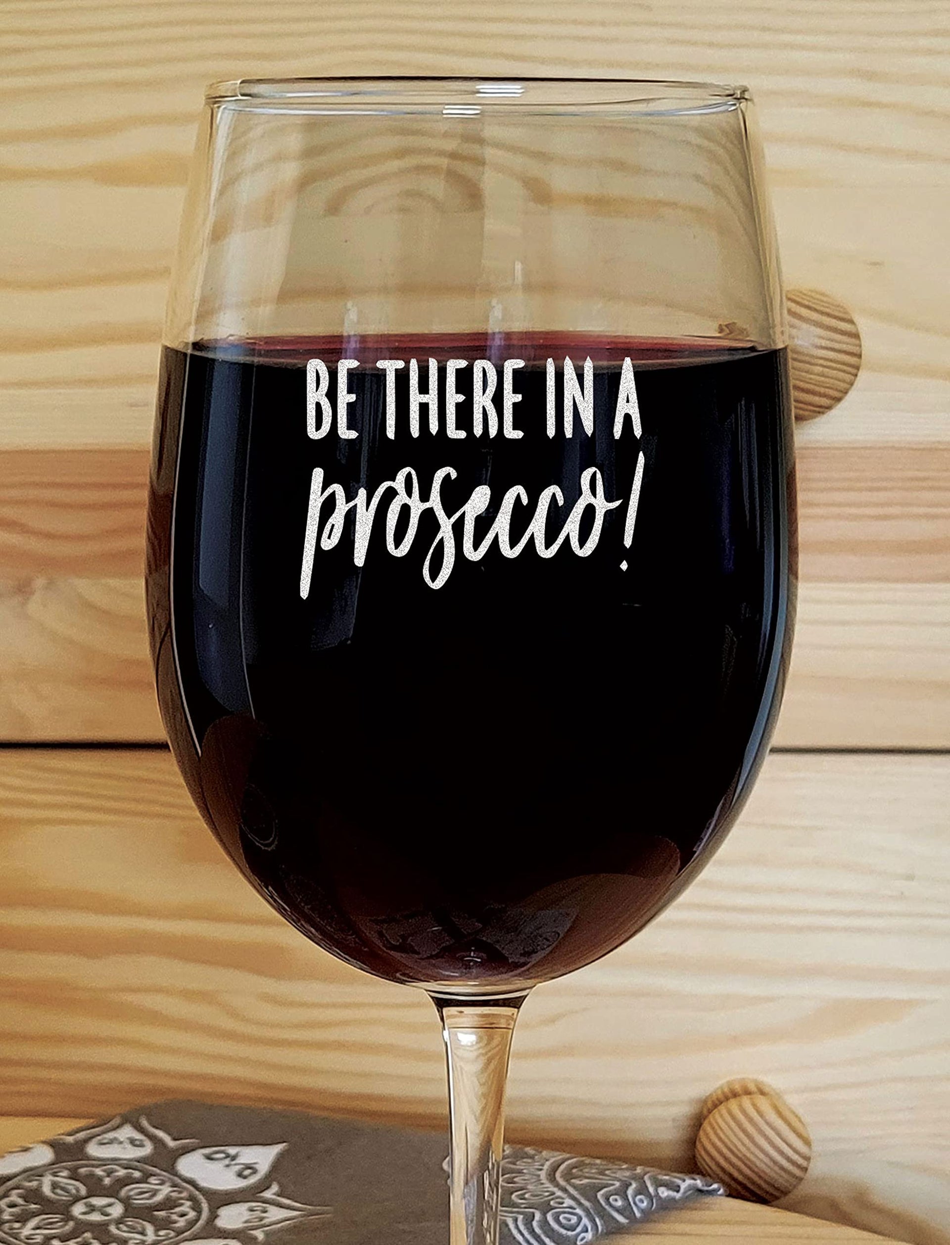 the pink magnet Be There in a Prosecco - Engraved Wine Glass