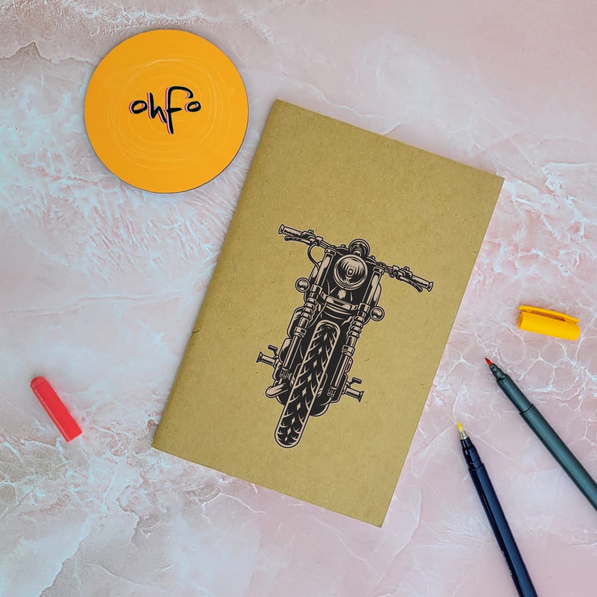 Bikers - Brown A5 Doodle Notebook - Kraft Cover Notebook - A5-300 GSM Kraft Cover - Handmade - Unruled - 80 Pages - Natural Shade Pages 120 GSM - Funny Quotes & Quirky, Funky designs