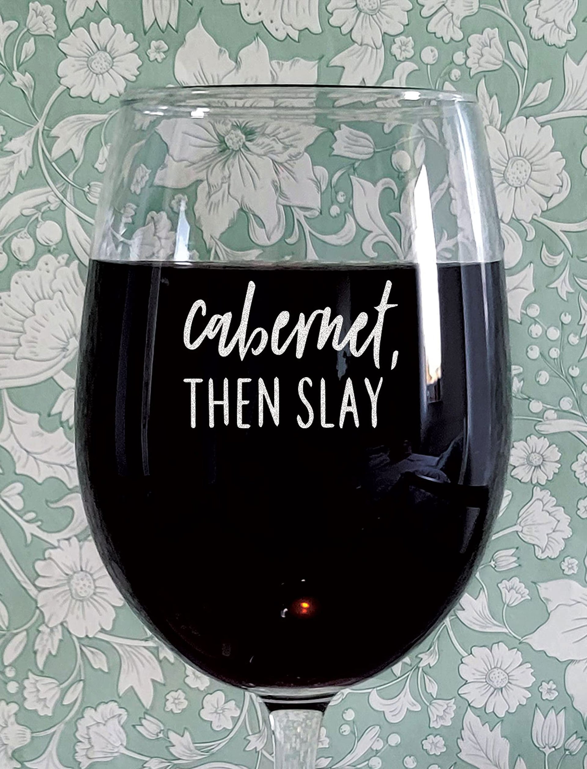 the pink magnet Cabernet, Then Slay - Engraved Wine Glass