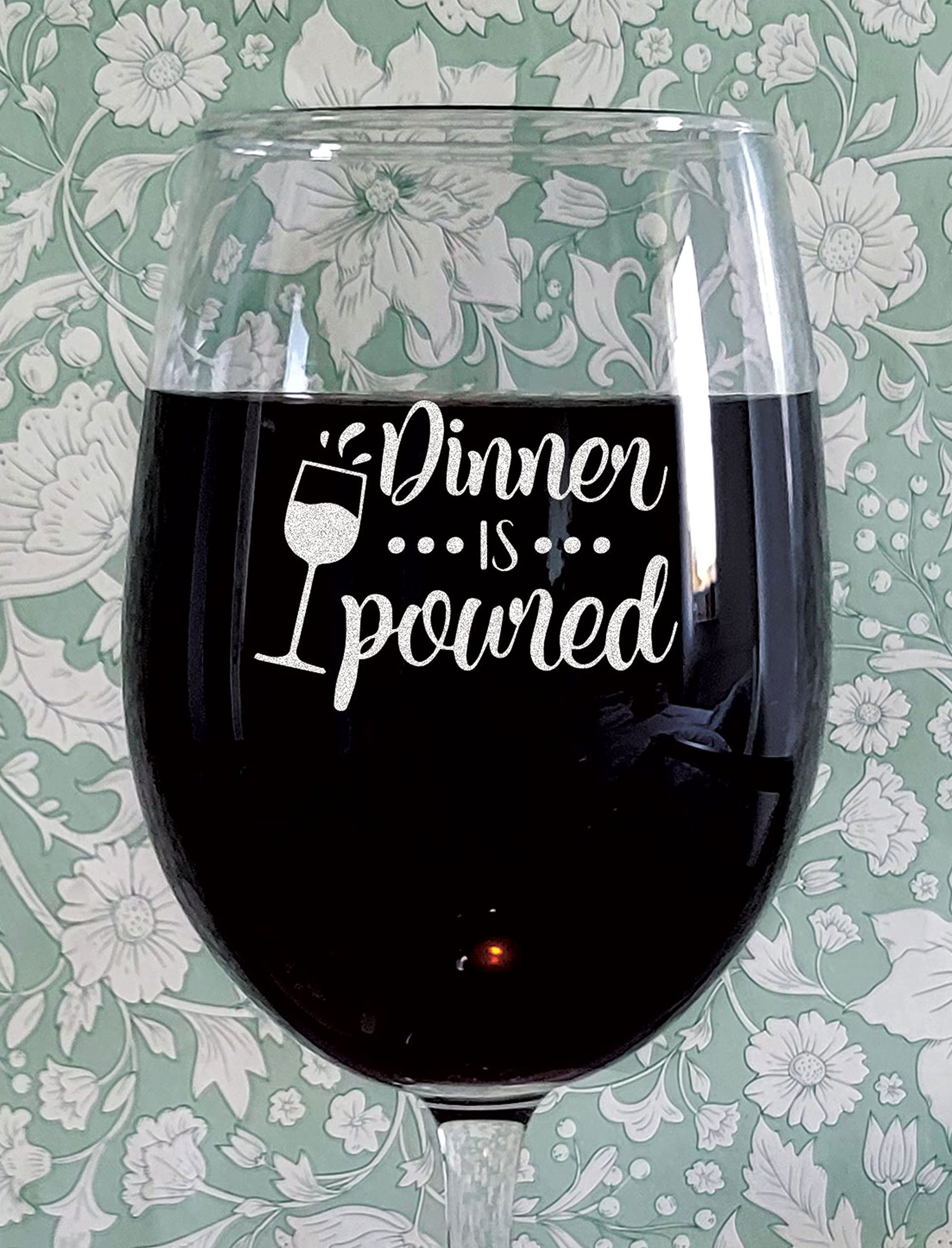 the pink magnet Dinner is Poured - Engraved Wine Glass