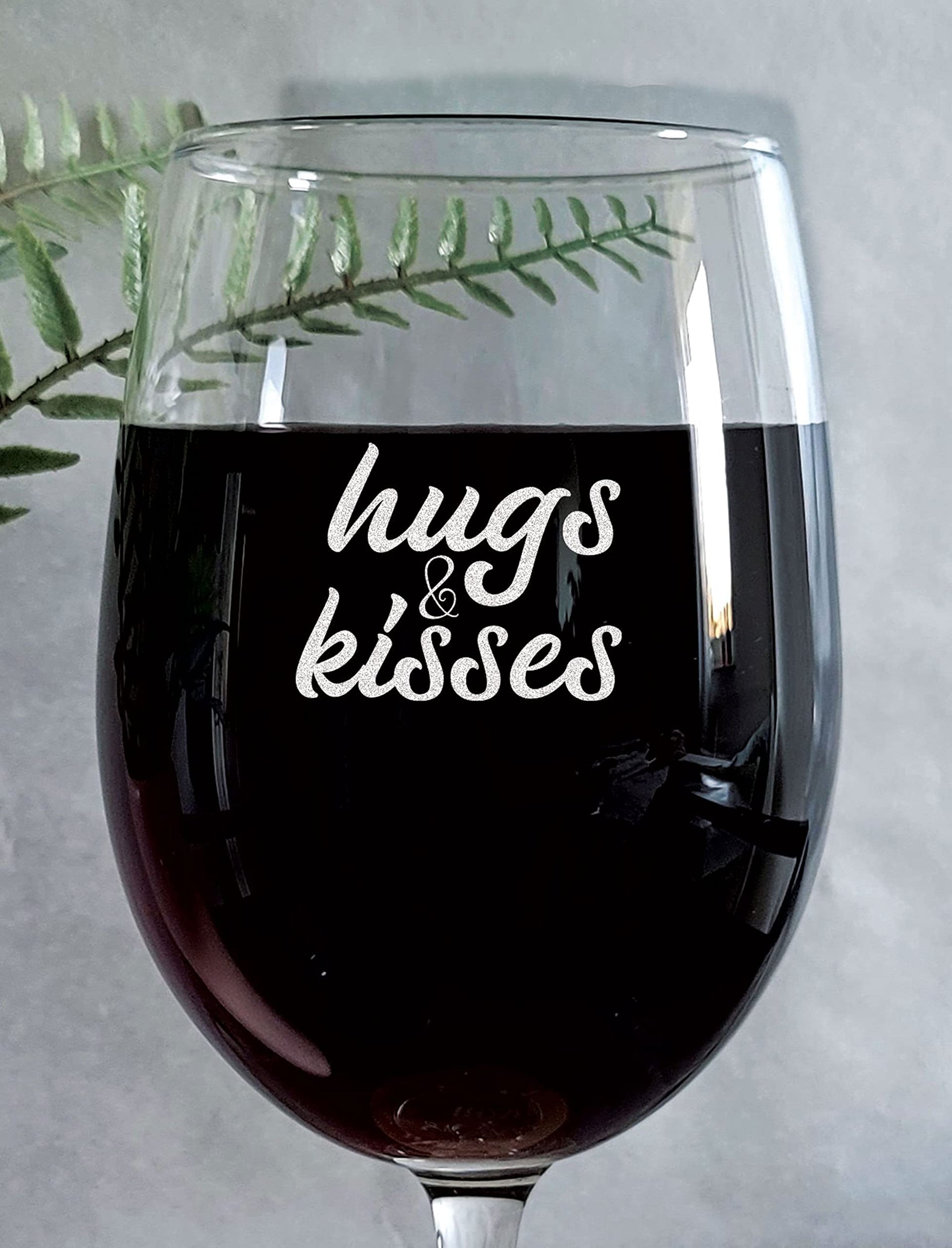 the pink magnet Hugs & Kisses - Engraved Wine Glass