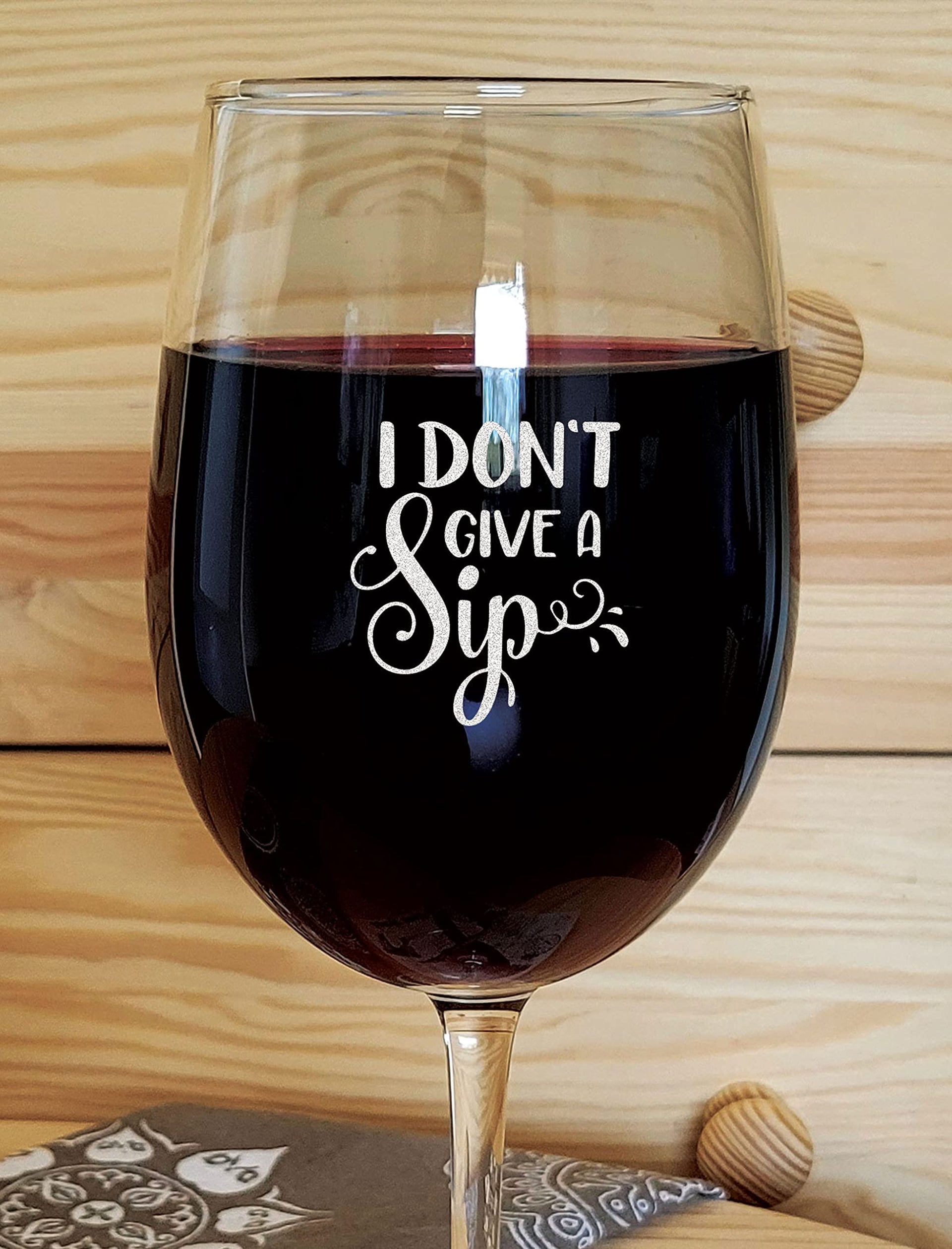 the pink magnet I Don't Give A Sip - Engraved Wine Glass