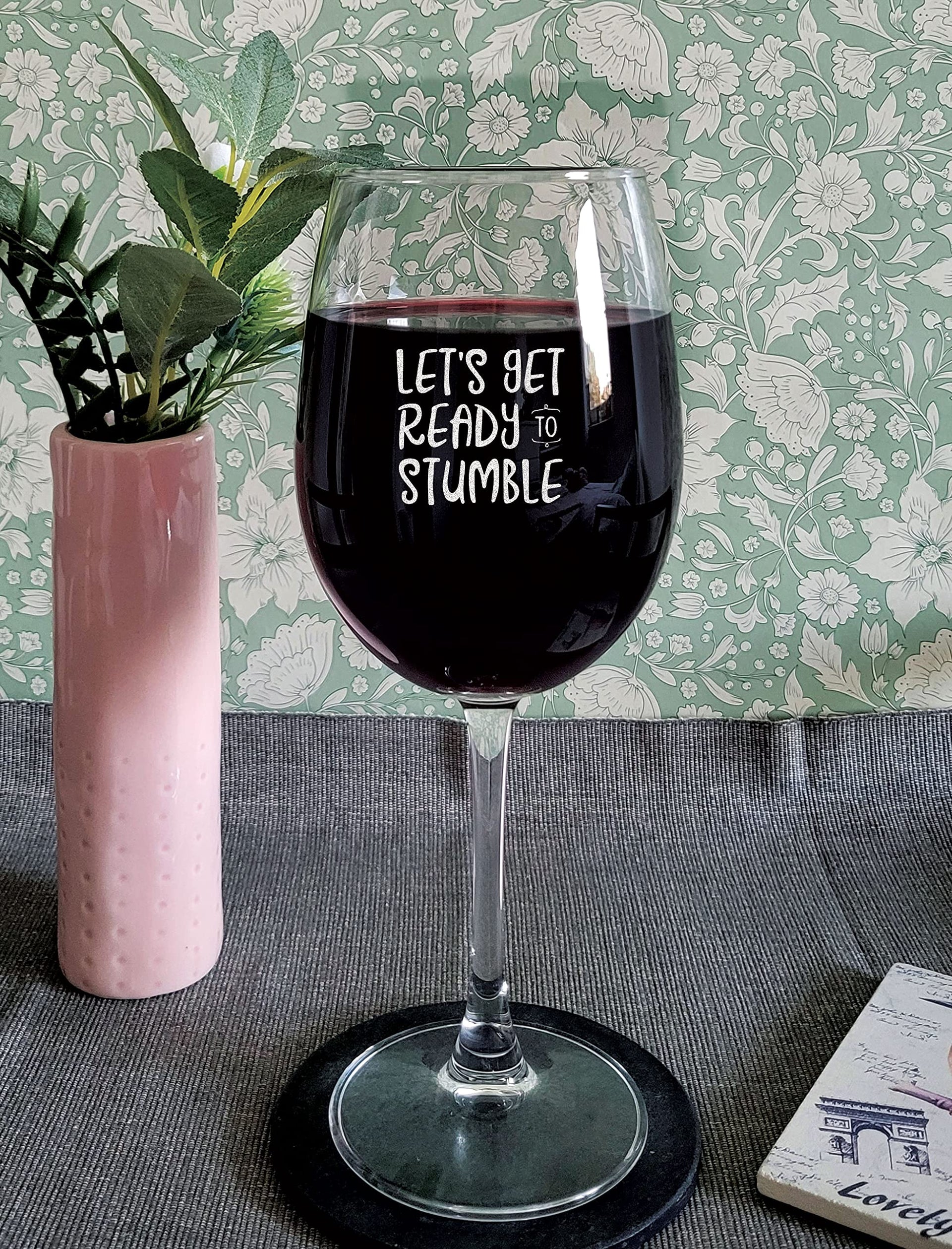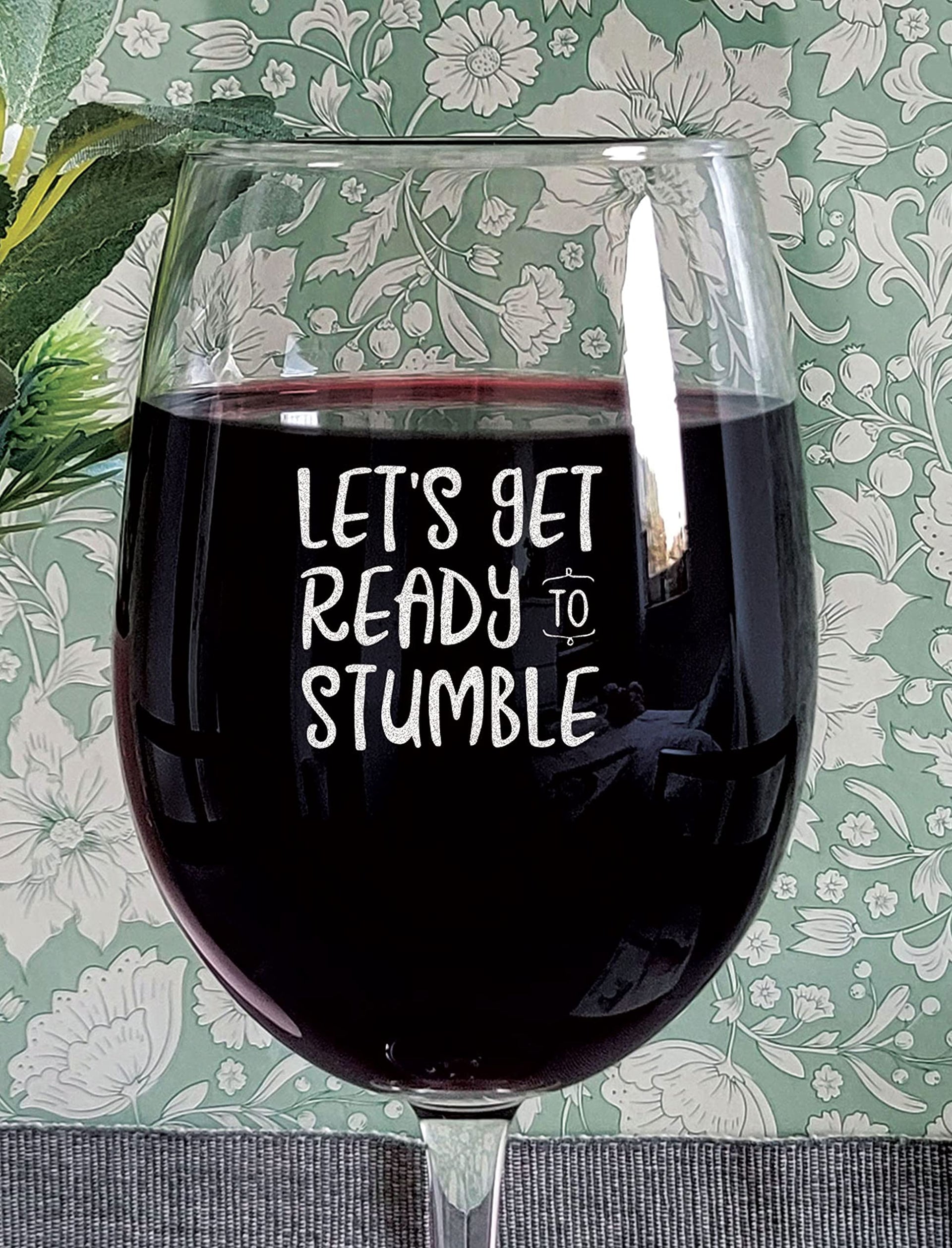 the pink magnet Let's Get Ready to Stumble - Engraved Wine Glass