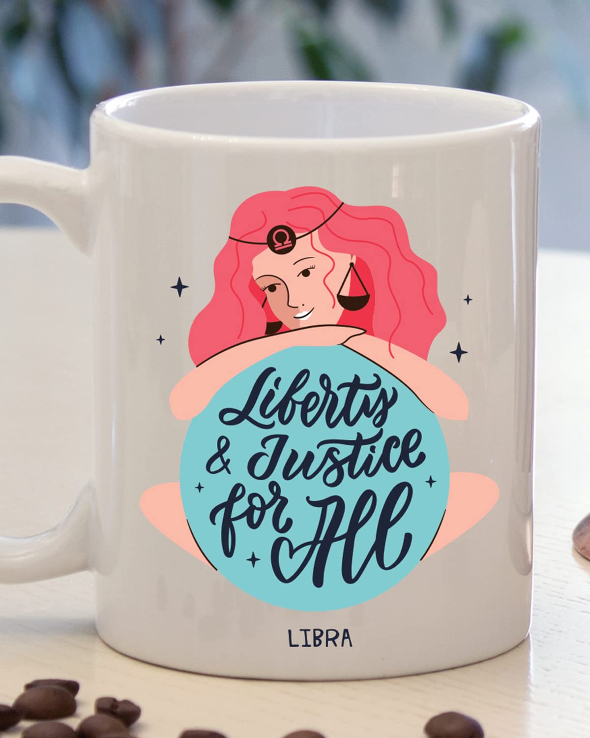 Libra - Liberty & Justice Coffee Mug - Gift for Friend, Birthday Gift, Birthday Mug, Printed with Zodiac Sign, Zodiac Sign Mugs for Him & Her Ceramic Zodiac Mug, Custom Zodiac Signs