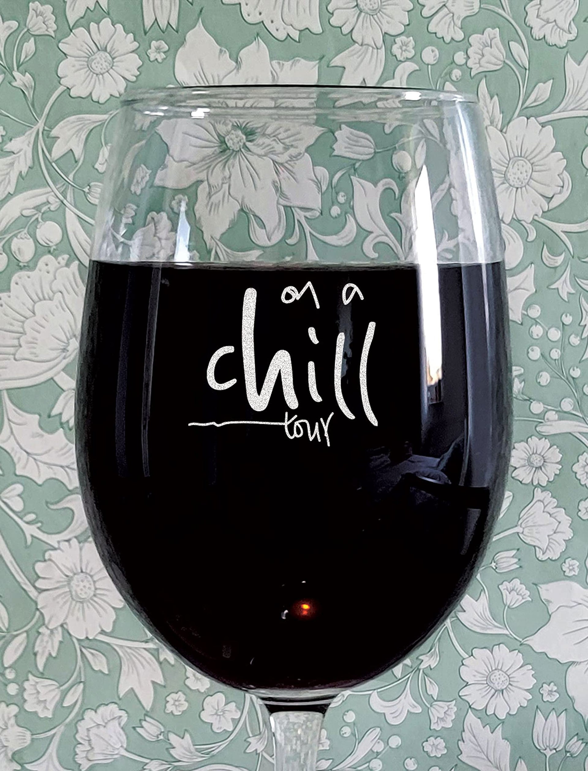 the pink magnet On A Chill Tour - Engraved Wine Glass