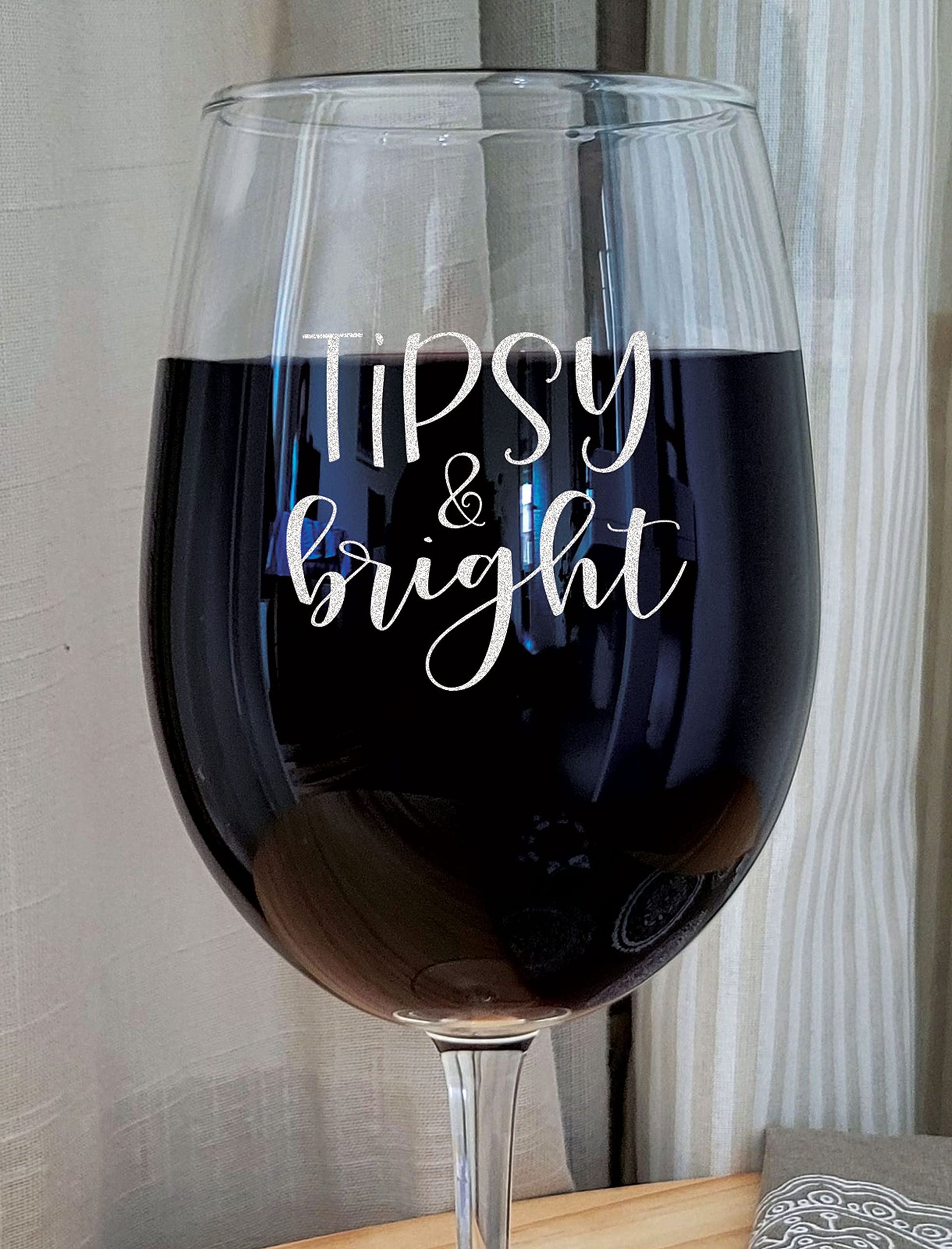 the pink magnet Tipsy & Bright - Engraved Wine Glass