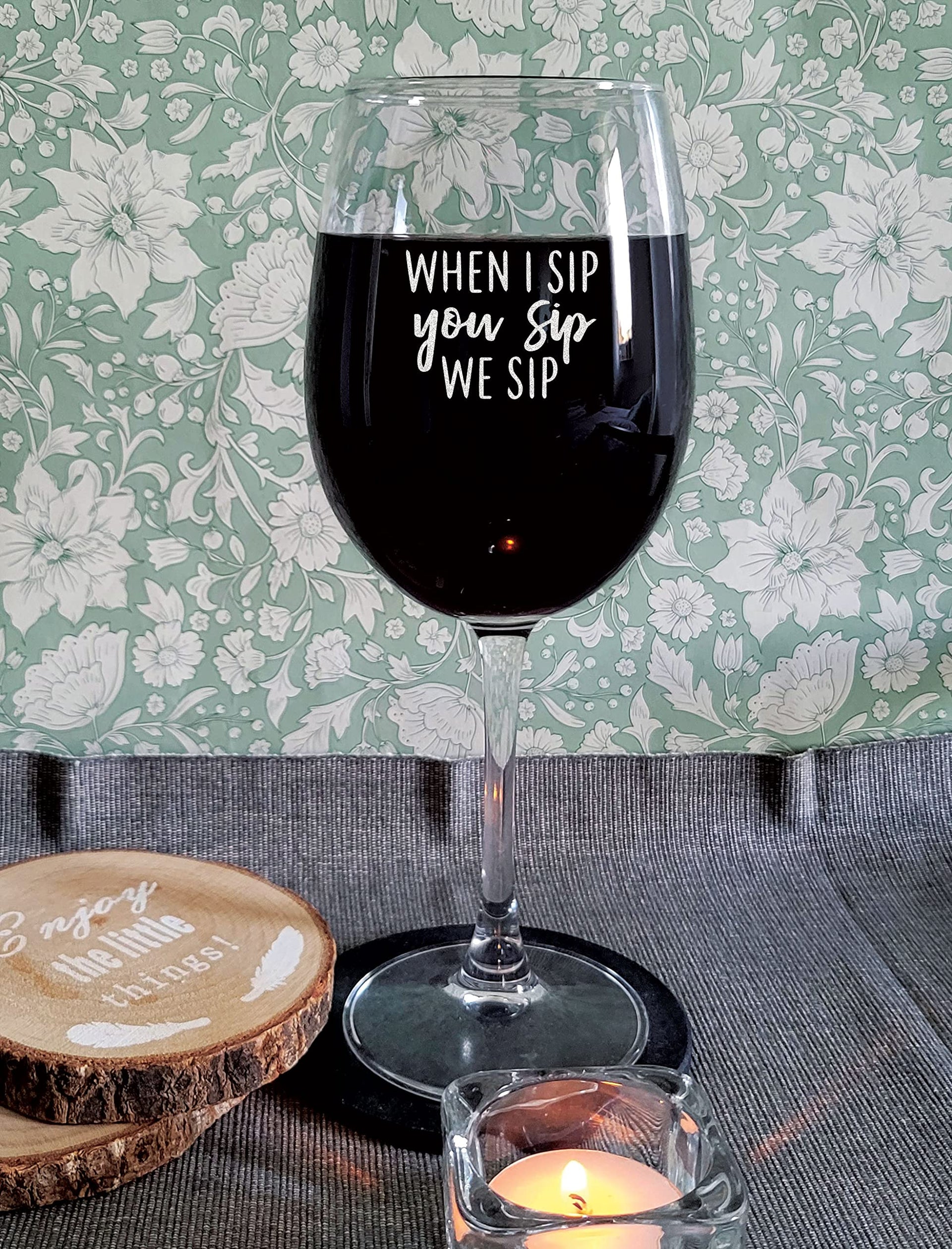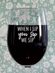 the pink magnet When I Sip, You Sip, We Sip - Engraved Wine Glass