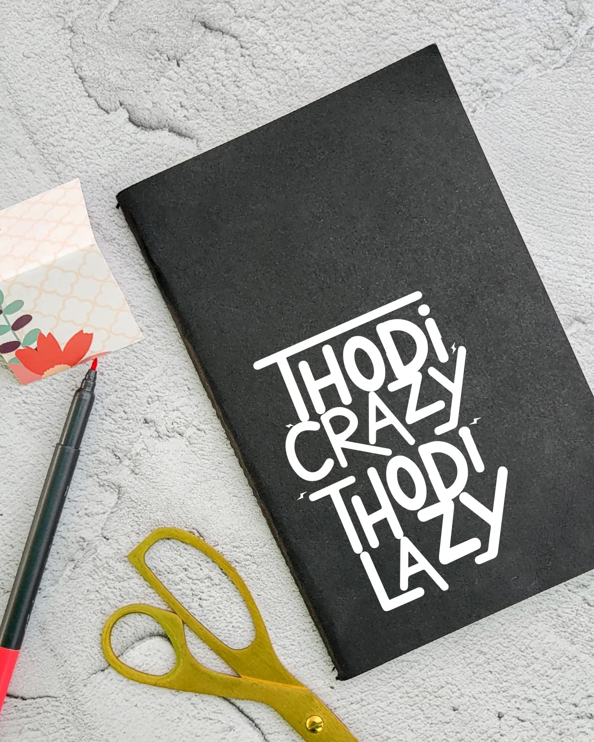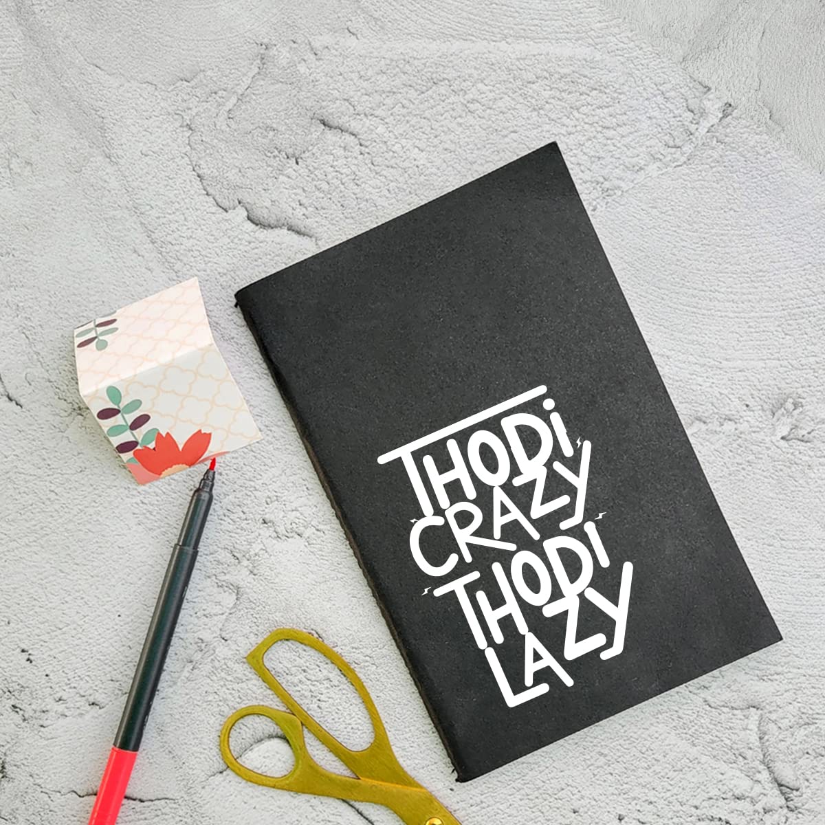Thoda Crazy Thoda Lazy - Black A5 Doodle Notebook - Kraft Cover Notebook - A5 - 300 GSM Kraft Cover - Handmade - Unruled - 80 Pages - Natural Shade Pages 120 GSM - Funny Quotes & Quirky, Funky designs