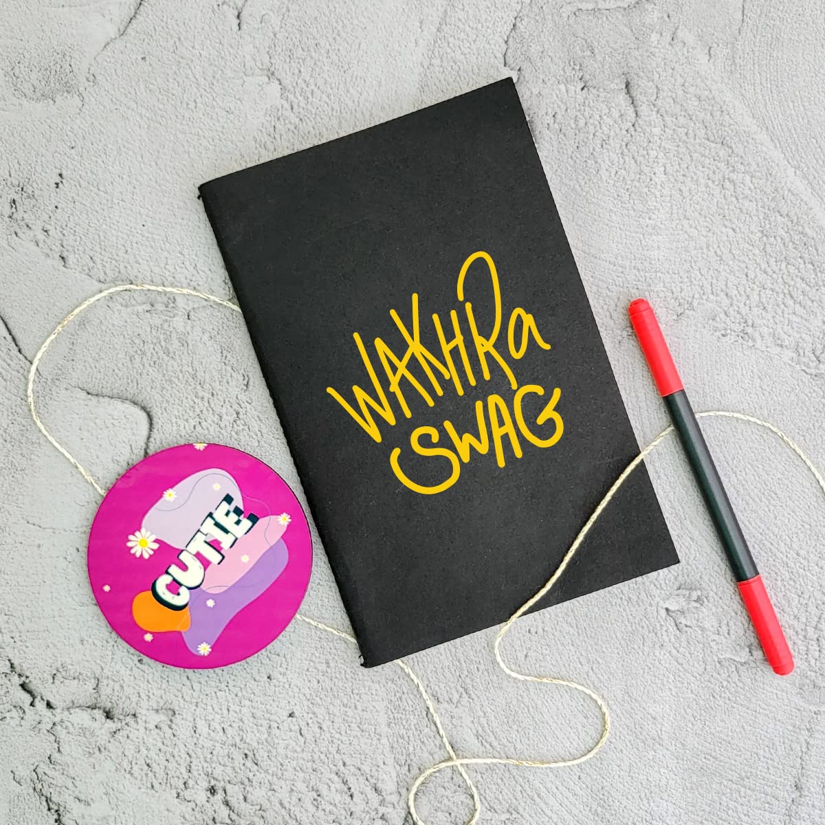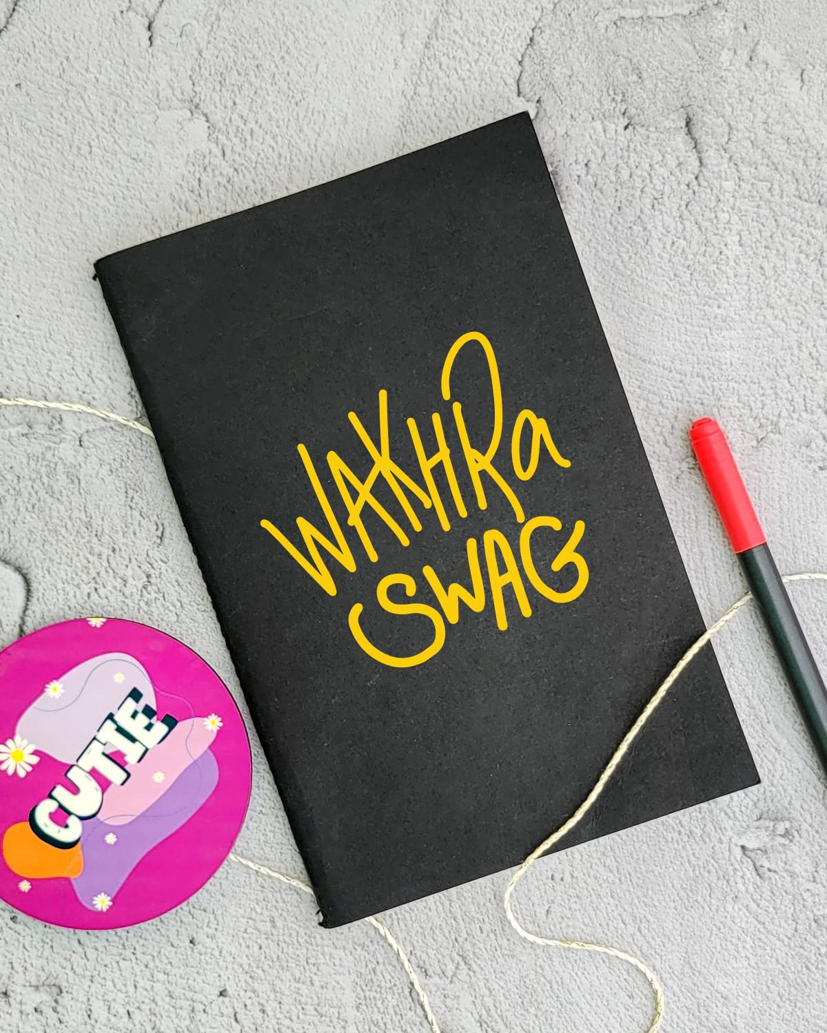 Wakhra Swag - Black A5 Doodle Notebook - Kraft Cover Notebook - A5 - 300 GSM Kraft Cover - Handmade - Unruled - 80 Pages - Natural Shade Pages 120 GSM - Funny Quotes & Quirky, Funky designs