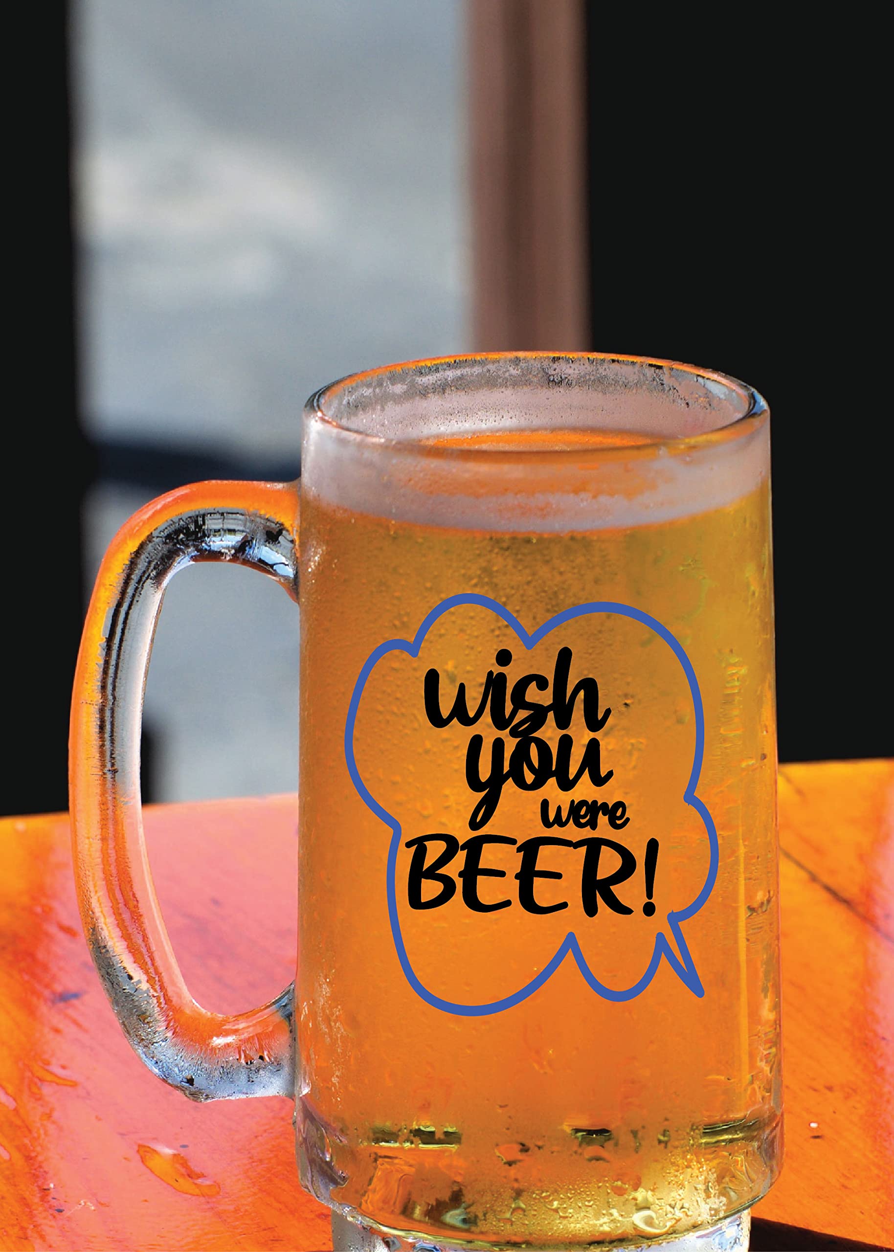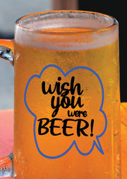 Wish You were Beer - Beer Mug -1 Piece, Clear, 500 ml - Transparent Glass Beer Mug -Printed Beer Mug with Handle Gift for Men Dad