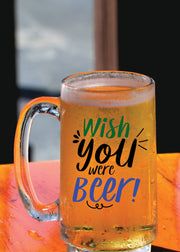 Wish You were Beer - Beer Mug - 1 Piece, Clear, 500 ml - Transparent Glass Beer Mug -Printed Beer Mug with Handle Gift for Men